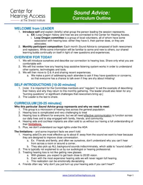 Sound Advice-Curriculum OutlineBy / A curriculum outline for monthly meetings. Download/View File Type: pdf File Size: 543 KB