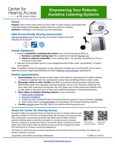 (1 page) Teach clients how to hear so much better in public venues, using these ADA-mandated wireless technologies, whether they are at home or traveling.
